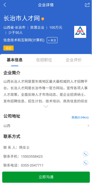 3、精準(zhǔn)匹配推薦:根據(jù)求職者的個人信息和職業(yè)規(guī)劃,長治人才網(wǎng)為企業(yè)推薦合適的候選人,提高招聘效率。